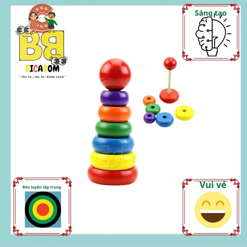 TÊN SẢN PHẨM: Bộ Đồ Chơi Tháp Xếp Cầu Vòng 7 Màu Bằng Gỗ Mini Cho Bé