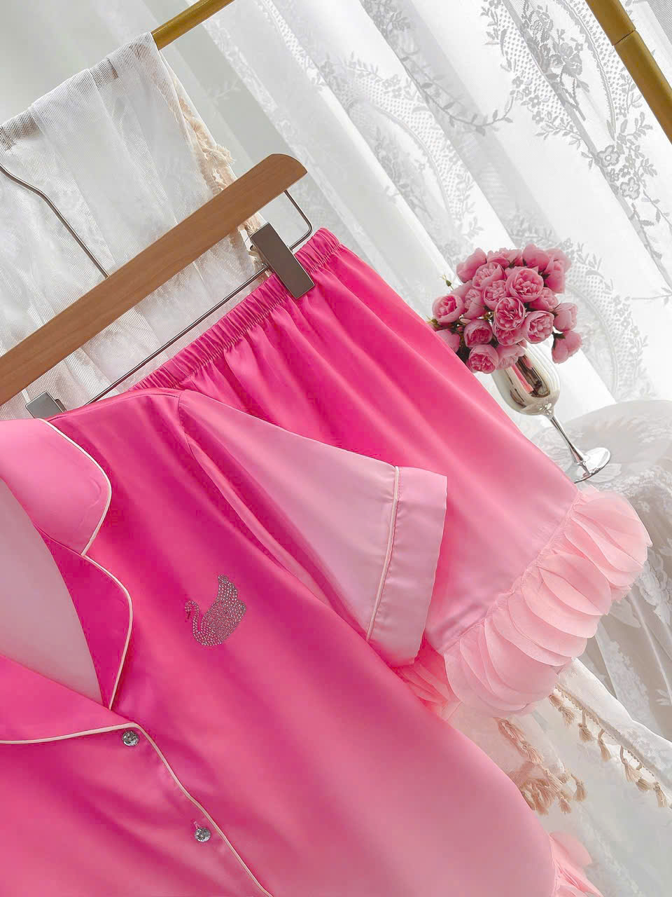 ✨Bộ Đồ Ngủ B291 Lụa Quảng Châu Cao Cấp Đính Đá Thiên Nga Xinh Xắn