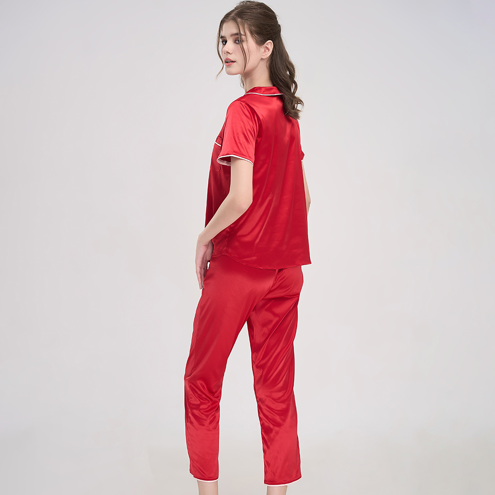 Bộ ngủ lụa dài Classic Bên cạnh việc sử dụng chất liệu lụa satin, còn điểm xuyết chi tiết thêu ren trong hầu hết các mẫu thiết kế, để giúp người mặc khoe trọn vẹn