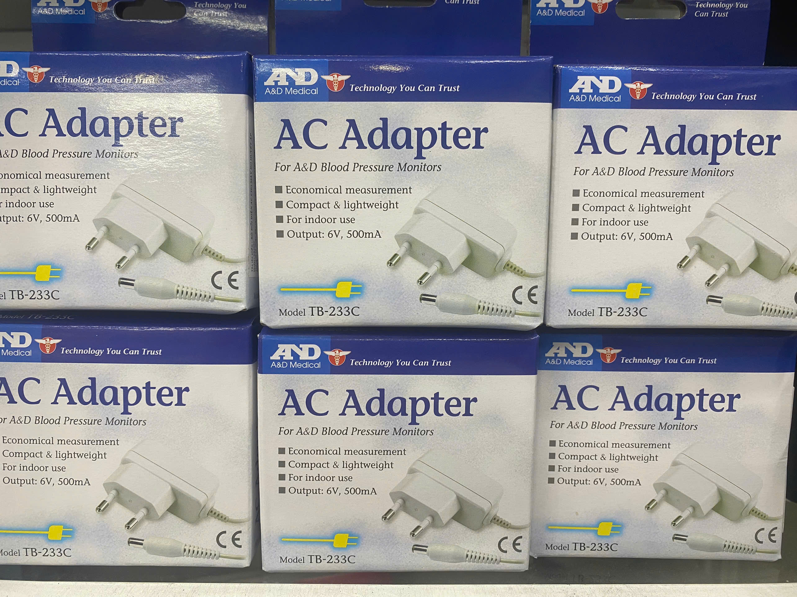 Mua tại TiktokBộ đổi điện AC cho máy đo huyết áp AND TB233C-EC -Công dụng: Dùng thay thế pin cho máy đo huyết áp bắp tay AND, luôn cung cấp nguồn điện ổn định, hạn chế trường hợp pin chảy nước làm rỉ hỏng máy. Các dòng máy phù hợp: UA-651 Plus, UA-767S, UA-1020, UA-767JP Xuất xứ: Nhật Bản Nơi sản xuất: Trung Quốc -Đặc tính kỹ thuật: Ngõ vào: điện áp AC 100-240V 50/60Hz DC 6V 500mA Bảo hành: Không HDSD: Tham khảo HDSD của máy đo huyết áp AND