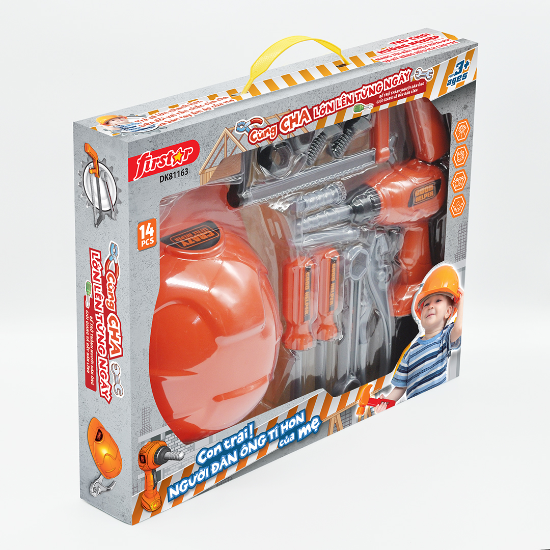 Bộ dụng cụ đồ chơi cho bé, DK 81163 Được mô phỏng với các dụng cụ cần thiết của các chú kỹ sư, công nhân, thợ cơ khíúp các bé trai tha