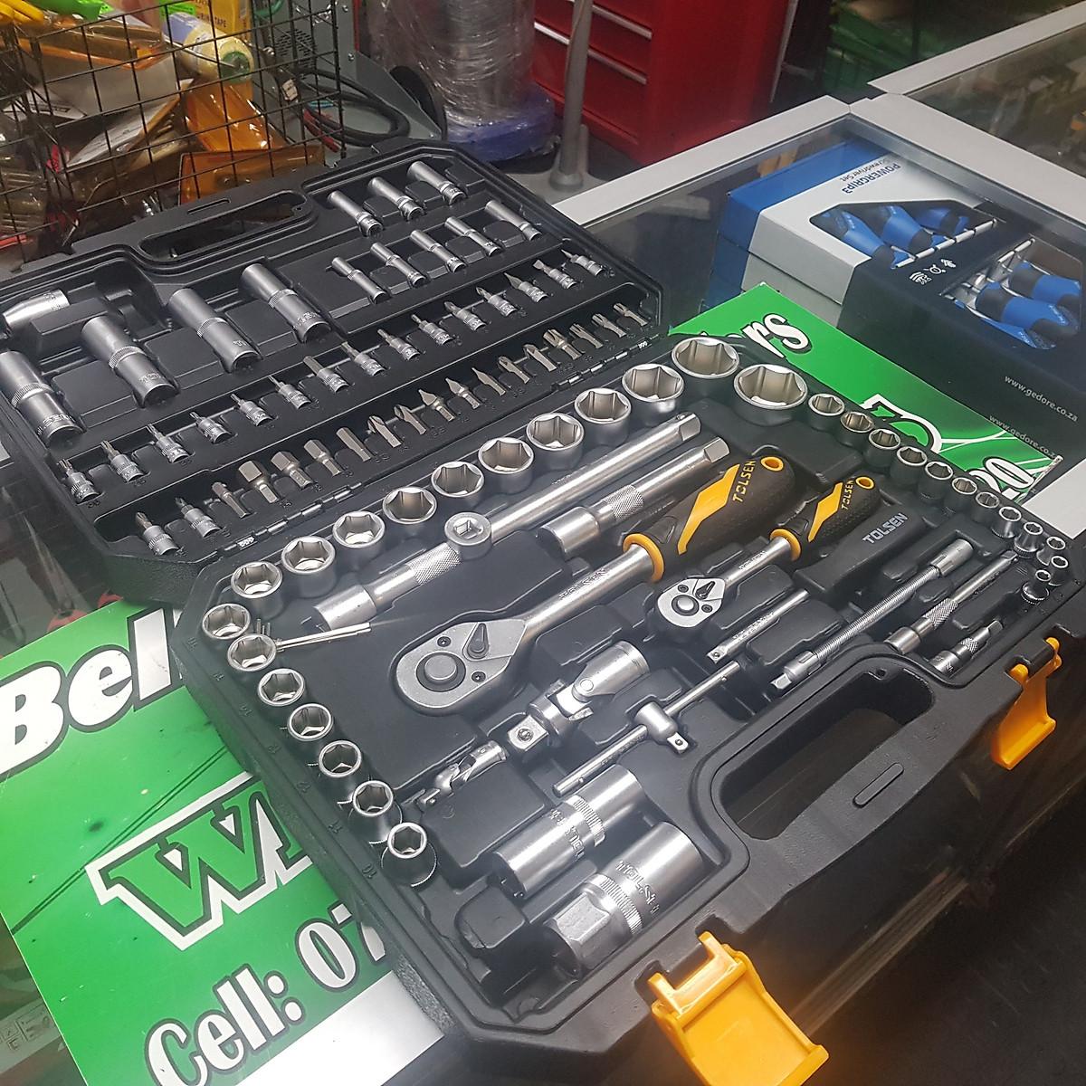 Bộ dụng cụ cầm tay 168 món Bao gồm: 1 búa nhổ đinh 8Oz 1 kìm kết hợp 7" 1 kìm mũi dài 6" 1 kìm bơm 10" 1 kìm tuốt dây 8,5" 1 tua