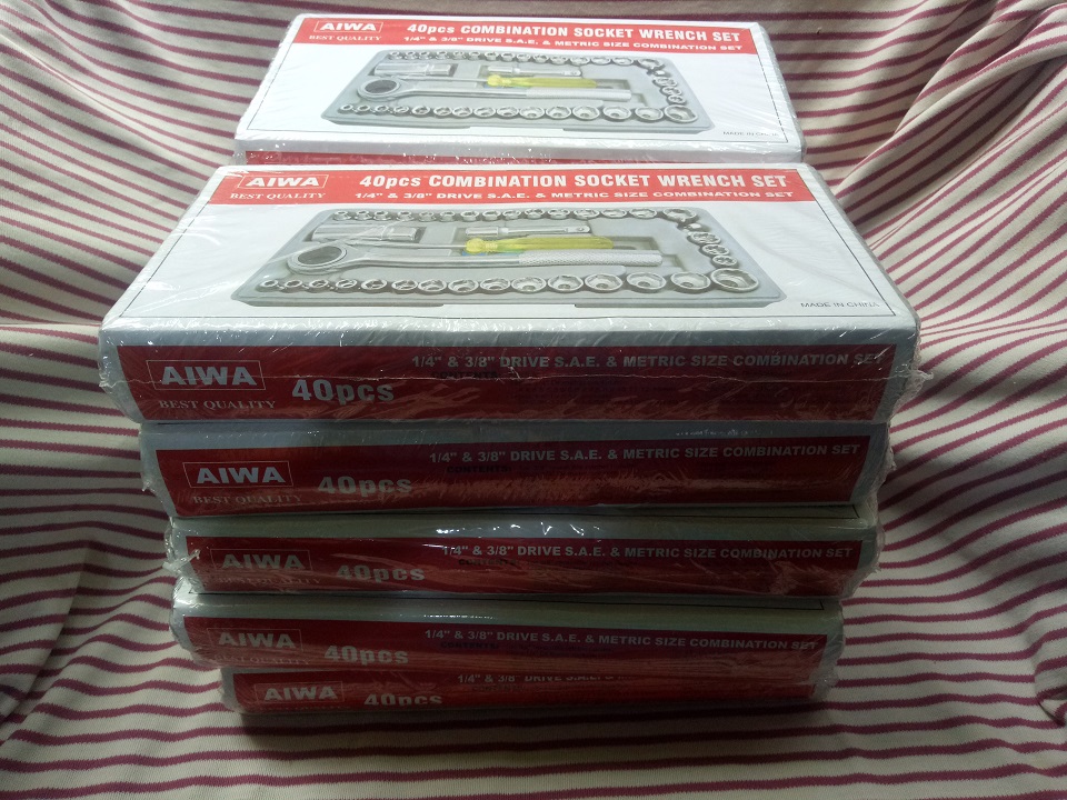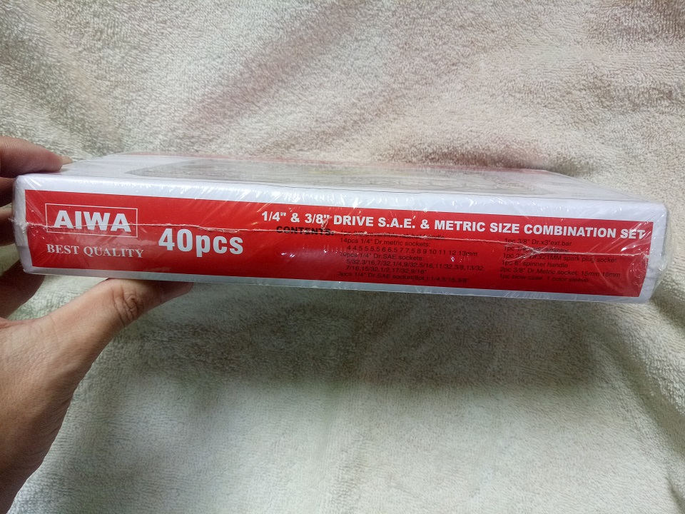 - + Bộ dụng cụ sửa chữa đa năng 40 món Aiwa có các đầu khẩu, tay siết, cần nối đều được làm bằng chất liệu thép có hàm lượng cacbon cao, siêu cứng, chịu lực tốt, không bị oxy hóa, thời gian sử dụng bền lâu. Không những thế, các đầu khẩu được gia công rất tỉ mỉ, công phu, đảm bảo trong quá trình tháo lắp không làm trầy xước bề mặt, hay làm cháy ren bu lông;