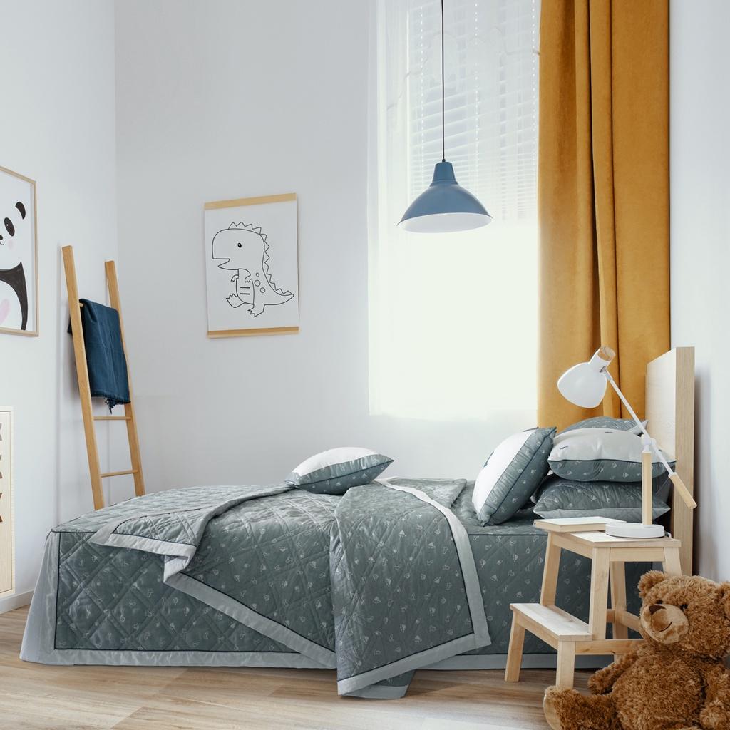 Chất liệu: 100% Cotton là bộ chăn ga đặc biệt thiết kế riêng cho những khách hàng nhí của Everon. Nổi bật với hình ảnh chú khủng long Dino dễ thương, EPC22041 sử dụng cách may đáp vải tinh tế, tạo sự hài hòa trong màu sắc và nổi bật hình ảnh hơn. Trên nền vải Cotton Satin còn xuất hiện thêm nhiều chú khủng long nhỏ xinh được in nổi bật, vô cùng đáng yêu. Nền vải xanh kết hợp cùng vải ghi rất sạch sẽ, dễ sử dụng.