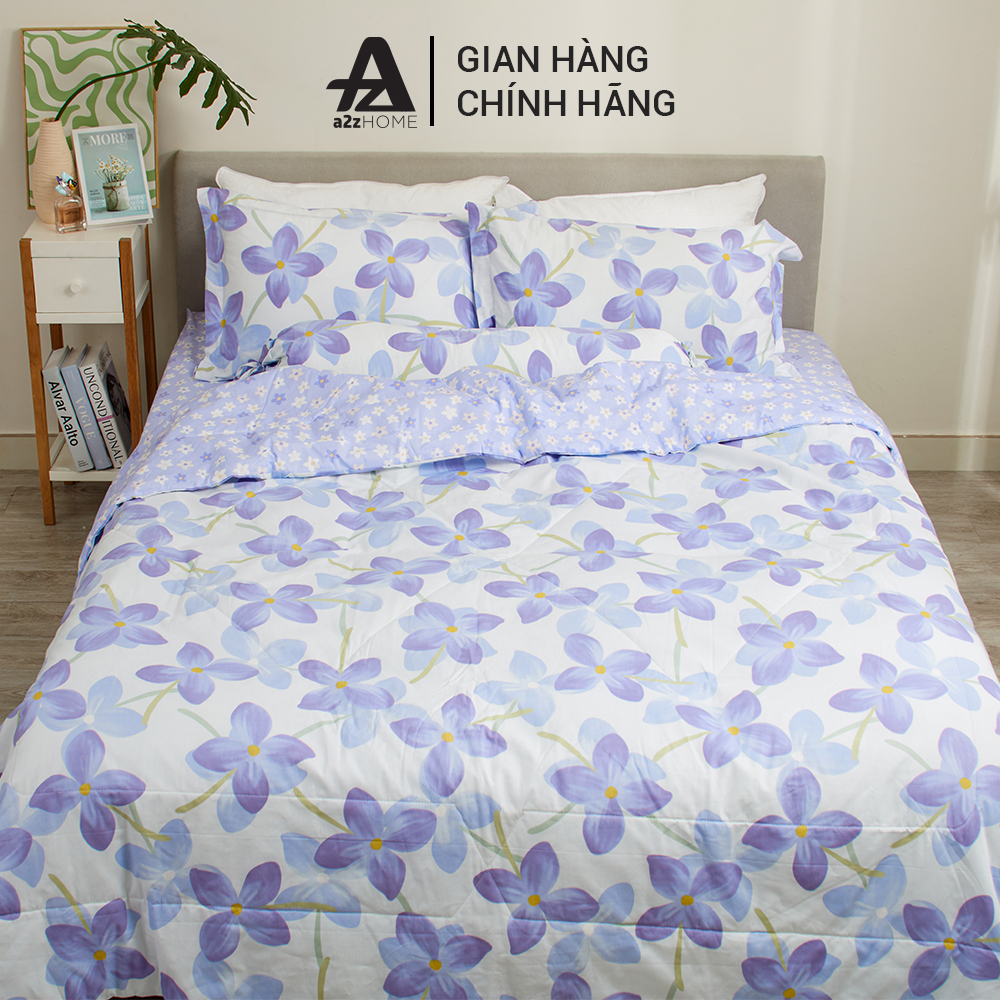 Bộ Ga Trải Giường Mền Chần Bông 5 Món Hyacinth Flowers Mềm Mại 100% Cotton Tự Nhiên A2Z Home những cánh hoa mang sắc xanh tím lạ mắt , giúp phòng ngủ của bạn thật