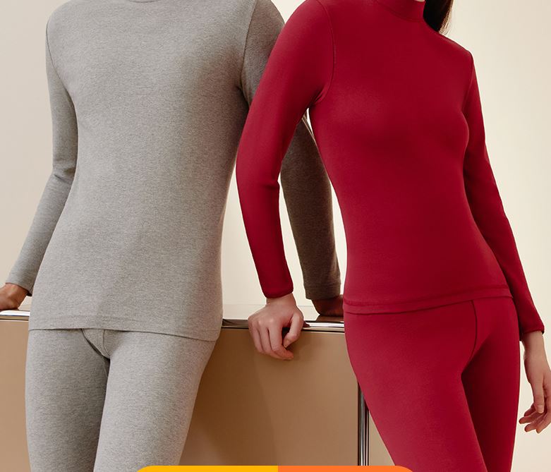Bộ đồ giữ nhiệt nữ chất liệu len lông cừu và tơ tằm, cổ cao vừa, dày dặn mùa thu đông