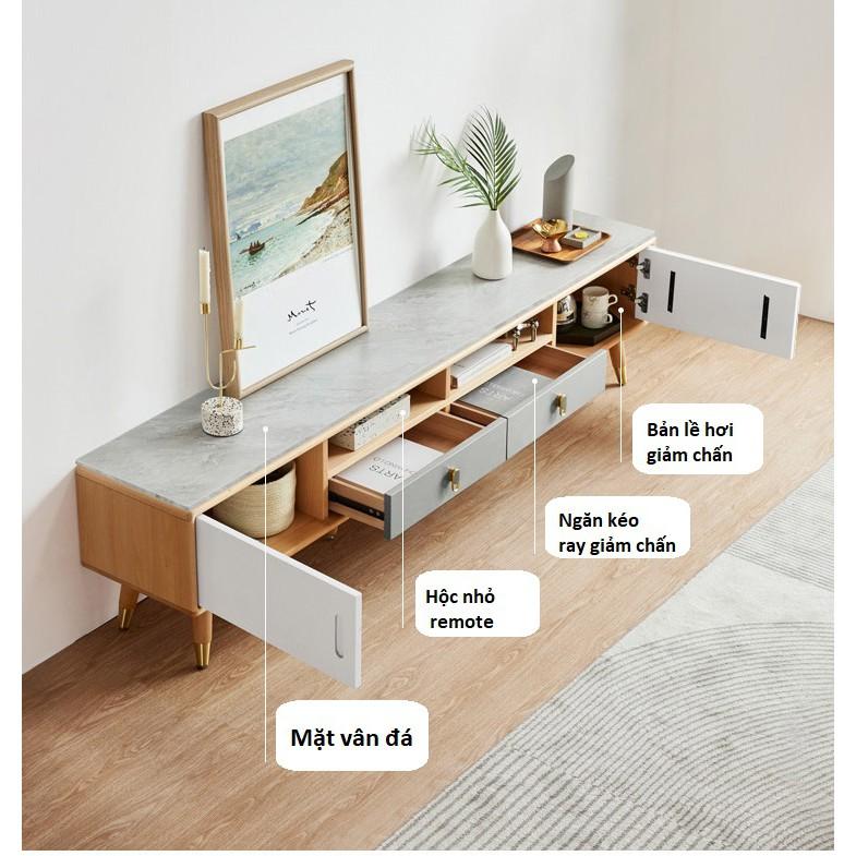 Mua tại TiktokThương hiệu: HUCHU Có phải lắp ráp hay không ? => Lắp ráp sẵn, chỉ cần gắn chân vào là sử dụng Kích thước: Kệ tivi: ngang 2m cao 46cm sâu 36cm Bàn sofa: ngang 1m cao 44cm rộng 57cm Chất liệu: gỗ MDF kháng ẩm phủ min không bong tróc theo thời gian, độ bền 20 năm Phong cách: Bắc Âu Hình dạng: vuông vức Màu sắc: Trắng + màu ghi + xám + vân đá Tủ rút gọn có thể tuỳ chỉnh độ dài từ 1,5m - 2,6m Xuất xứ: Việt nam Vận chuyển toàn quốc