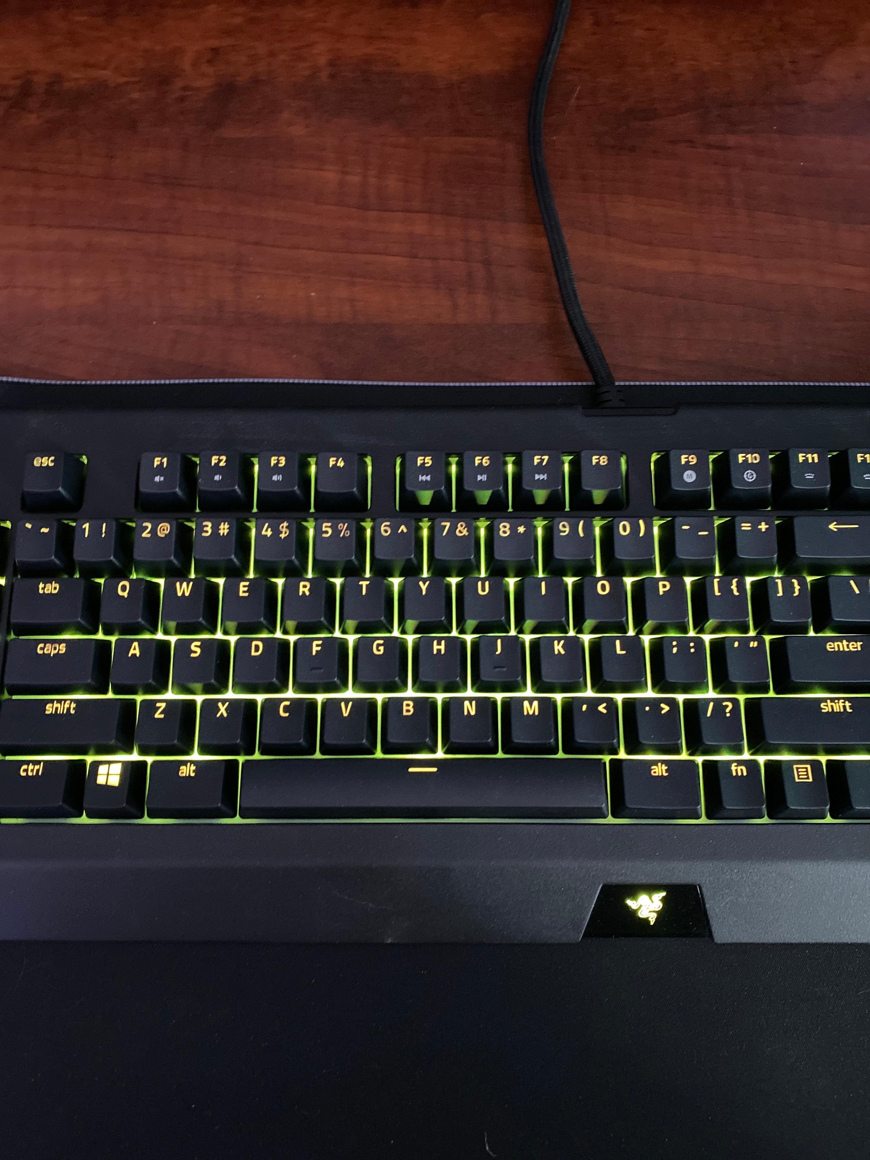 Các phím được đúc Double-shot với quy trình đặc biệt để đảm bảo độ bền và hiệu suất lâu dài. Chúng được thiết kế để tương thích với đèn nền và hoạt động tốt nhất với đèn Razer Chroma RGB.