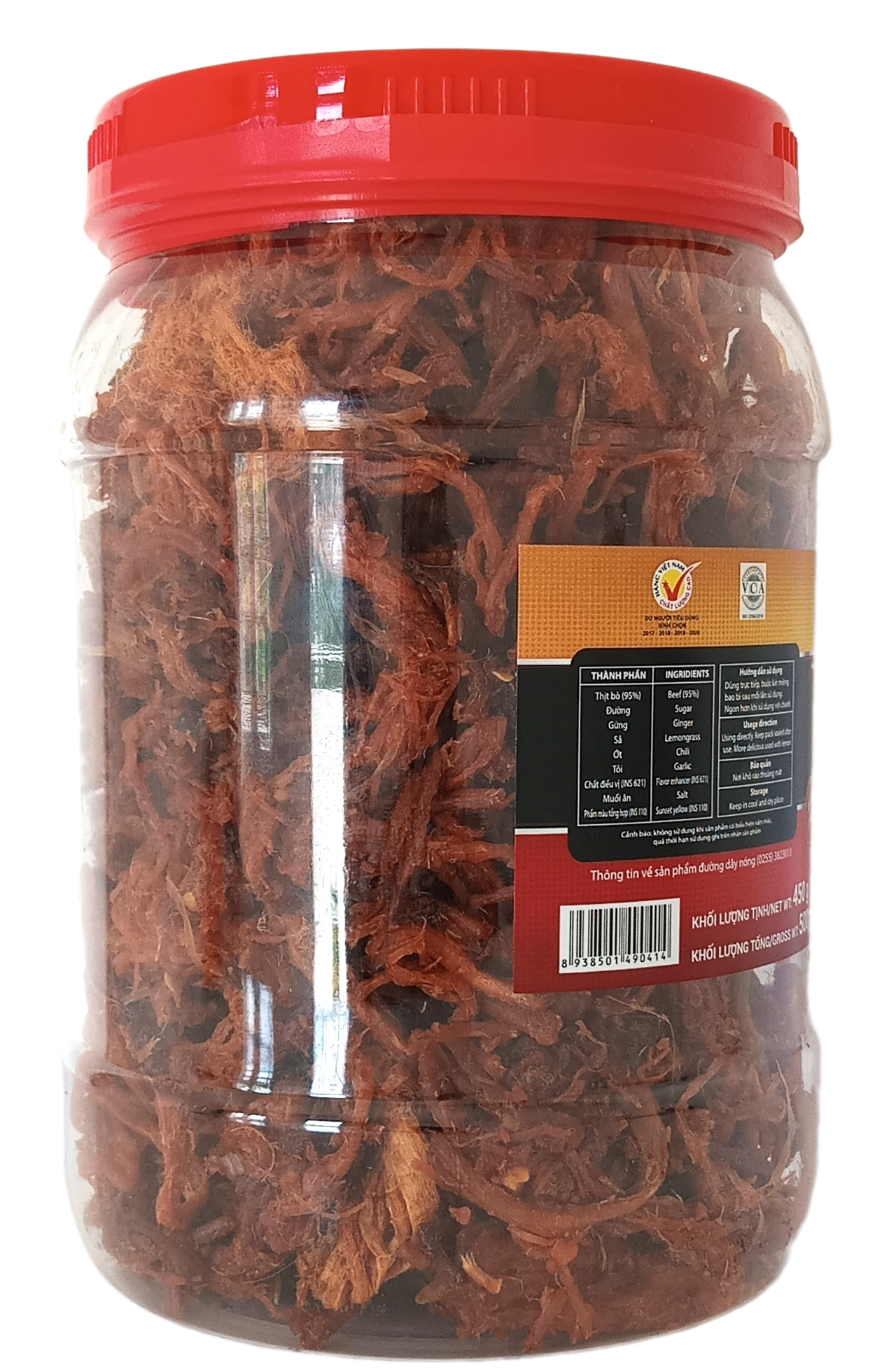 1 hộp plastic thịt bò khô dạng xé sợi hiệu Thu Ba 500gr (KLT 450gr) Được làm từ 100% thịt bò bò tươi Không chất bảo quản độc hại Được chứng nhận An Toàn
