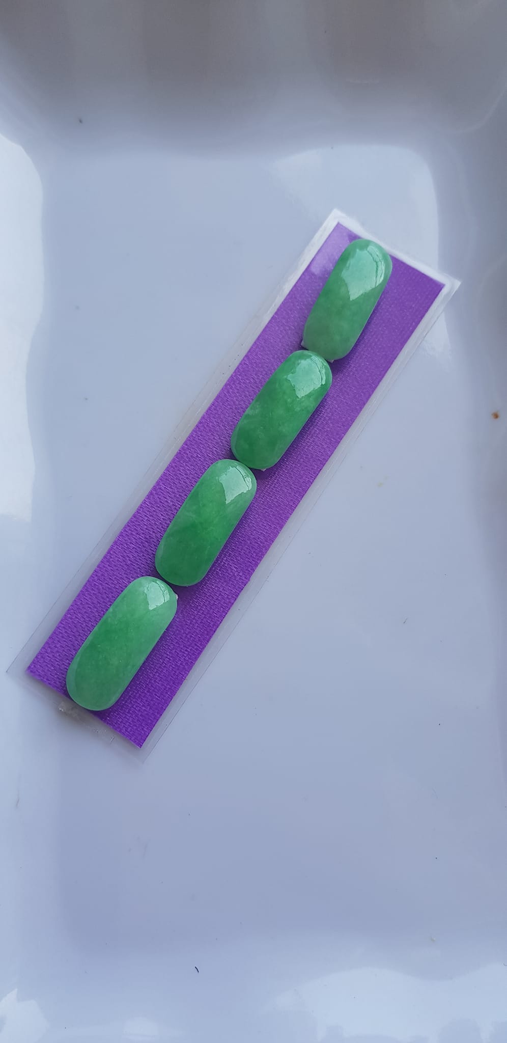 Bộ Lắc Tay Yên Ngựa Mới 4 viên Cẩm Thạch Tự Nhiên Xanh Tươi đều bóng đẹp Size Dài 20mm N9mm cao 3mm