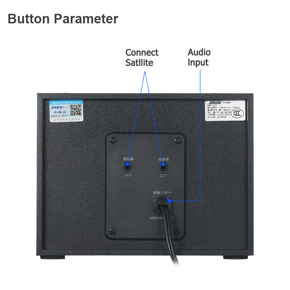 Overview: This SADA V-108 speaker is specially designed for home use. Comes with 3.5mm audio cable USB cable, you can enjoy much wonderful music by connecting it with many kinds of audio devices. It will
