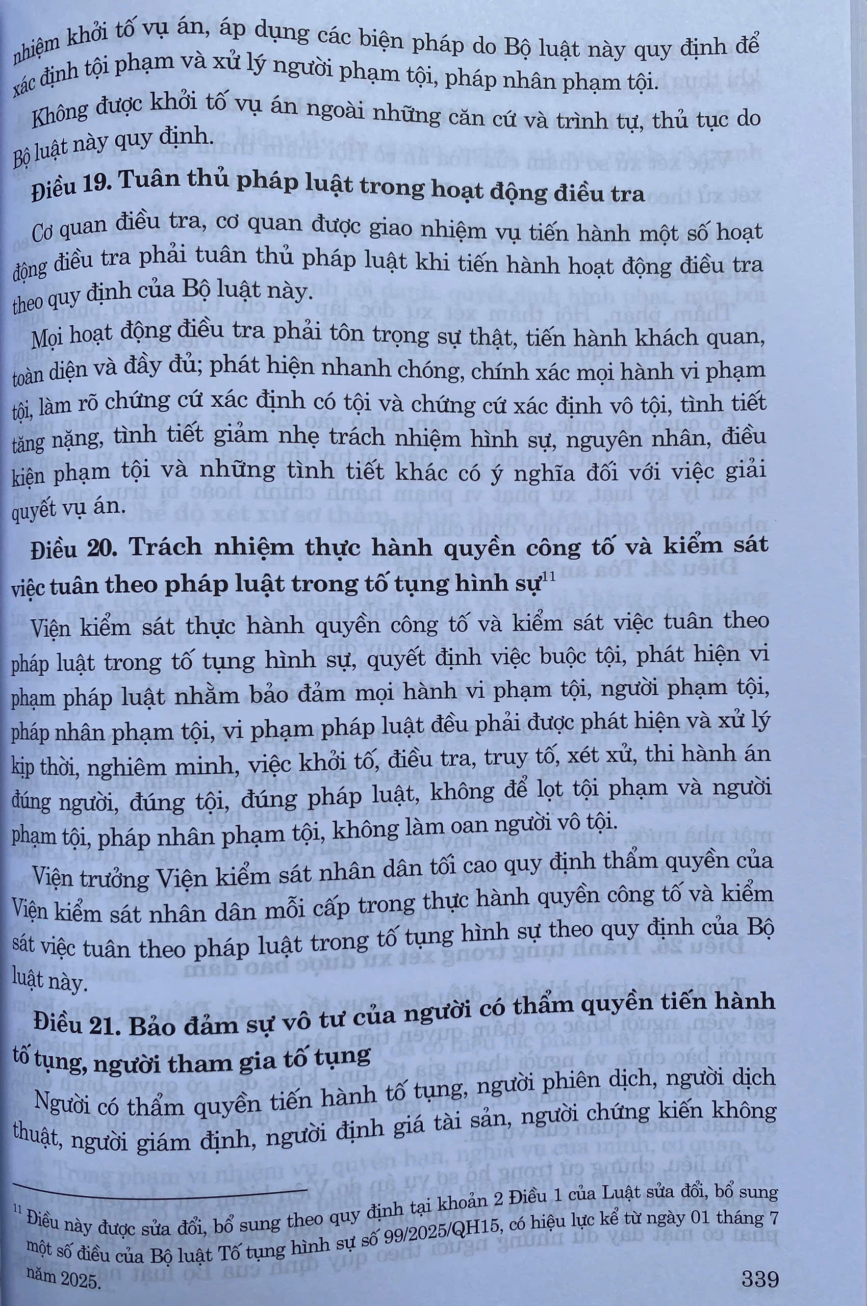 Cùng với những thay đổi quan trọng trong Hiến pháp và pháp luật cũng như trong tư duy lập pháp, bên cạnh đó, đã có những vướng mắc và bất cập bộc lộ trong thực tiễn áp dụng, Bộ luật Hình sự năm 2015 (sửa đổi, bổ sung năm 2017) và Bộ luật Tố tụng hình sự năm 2015 (sửa đổi, bổ sung năm 2021) tiếp tục được sửa đổi, bổ sung lần lượt bởi Luật số 86/2025/QH15 sửa đổi, bổ sung một số điều của Bộ luật Hình sự và Luật Sửa đổi, bổ sung một số điều của Bộ luật Tố tụng hình sự số 99/2025/QH15.