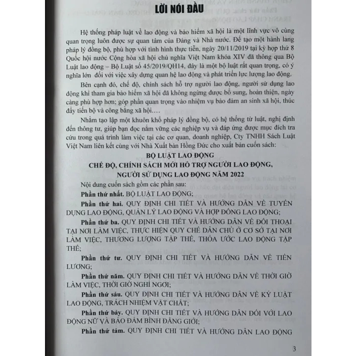 Hệ thống pháp luật về lao động luôn được sự quan tâm của Đảng và Nhà nước, để tạo một hành lang pháp lý đồng bộ, phù hợp với tình hình thực tiễn. Để giúp bạn đọc nắm vững các nghiệp vụ theo đúng quy định, chúng tôi đã tập hợp, hệ thống các văn bản có liên quan đến luật lao động, chính sách tiền lương… đáp ứng được mục đích tra cứu trong quá trình làm việc tại các cơ quan, doanh nghiệp. Nội Dung Cuốn Sách Bộ Luật Lao Động Chế Độ, Chính Sách Mới Hỗ Trợ Người Lao Động, Người Sử Dụng Lao Động Năm 2022 Gồm Các Phần Sau: