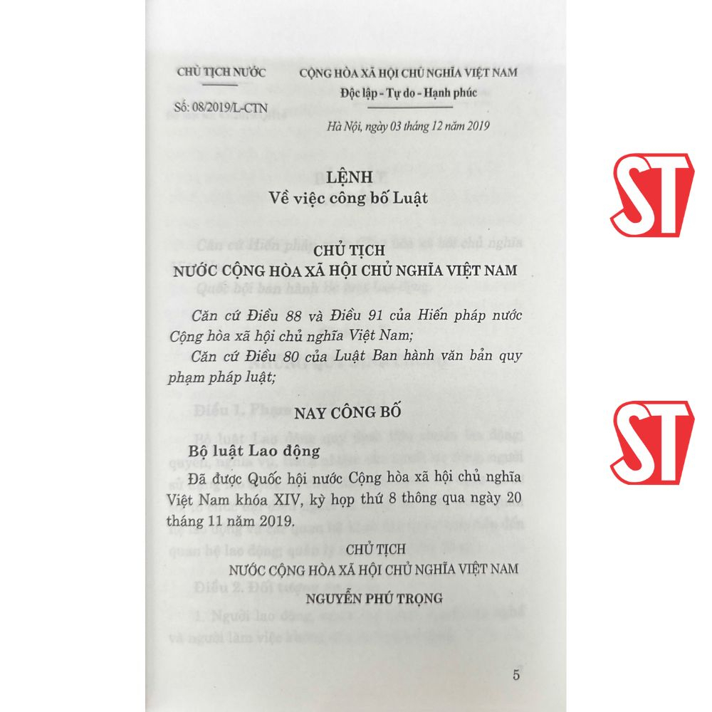 Phát hành cuốn sách "Bộ Luật Lao Động - Labor Code" (song ngữ Việt - Anh). Biên soạn theo Luật số 45/2019/QH14 được Quốc Hội thông qua ngày 20/11/2019, có hiệu lực thi hành ngày
