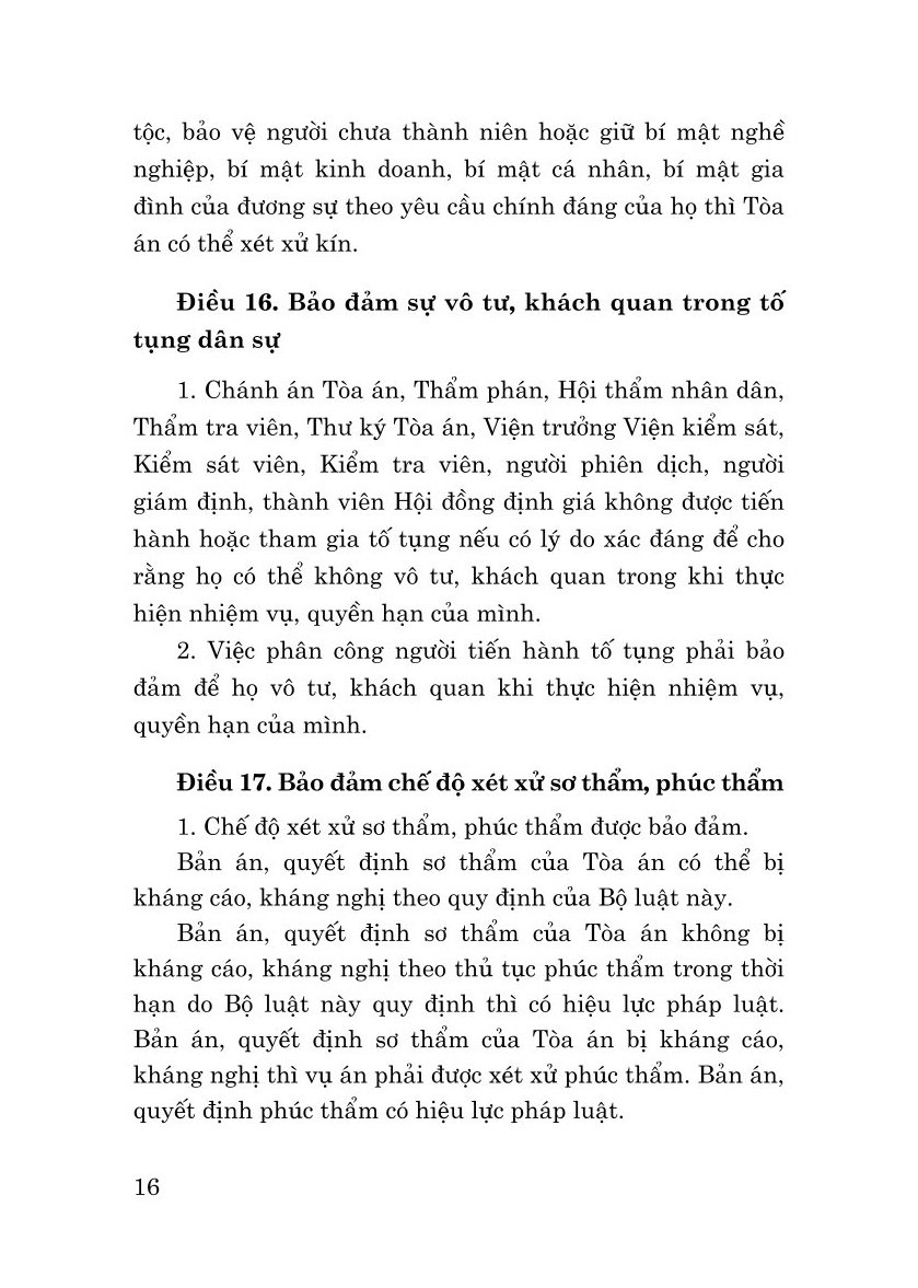 Mua tại TiktokCuốn sách là văn bản nhất thể hóa của Bộ luật Tố tụng Dân sự năm 2015 với nội dung sửa đổi, bổ sung Bộ luật Tố tụng Dân sự năm 2015 của Bộ luật Lao động năm 2019 và Luật Doanh nghiệp năm 2020; gồm 10 phần, 42 chương, 517 điều, quy định những nguyên tắc cơ bản trong tố tụng dân sự; trình tự và thủ tục để khởi kiện, yêu cầu để Tòa án giải quyết tranh chấp dân sự, hôn nhân và gia đình, kinh doanh, thương mại, lao động…, cung cấp cho bạn đọc một văn bản Bộ luật Tố tụng dân sự hoàn chỉnh, thuận tiện trong tra cứu và áp dụng Bộ luật.
