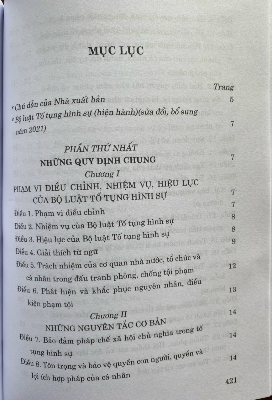 Phiên bản Bộ luật tố tụng hình sự năm 2015 (đính kèm 4 trang nội dung chỉnh sửa năm 2021), nên bạn đọc cân nhắc khi mua tham khảo Bộ luật tố tụng
