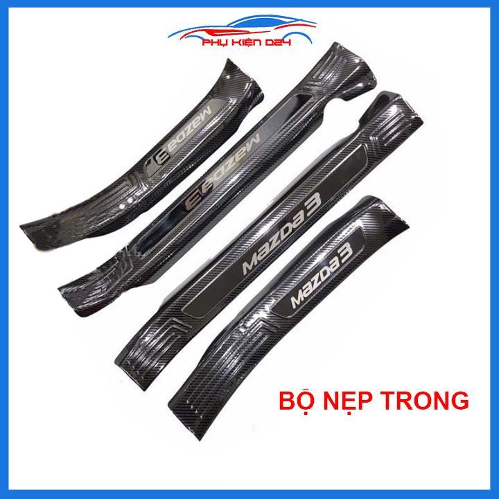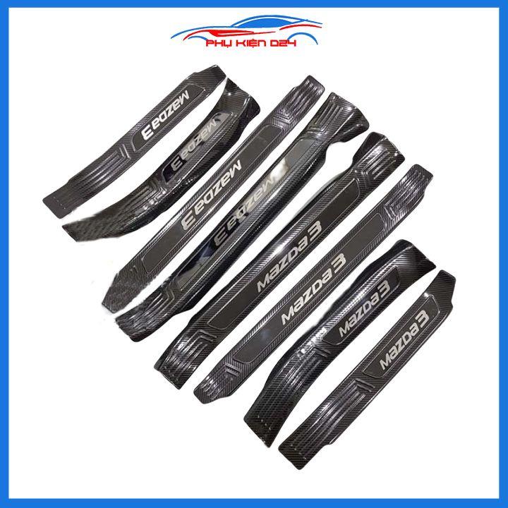 Bộ nẹp bước chân trong ngoài vân Cacbon xe Mazda 3 2015-2016-2017-2018-2019 chống trầy làm đẹp ô tô