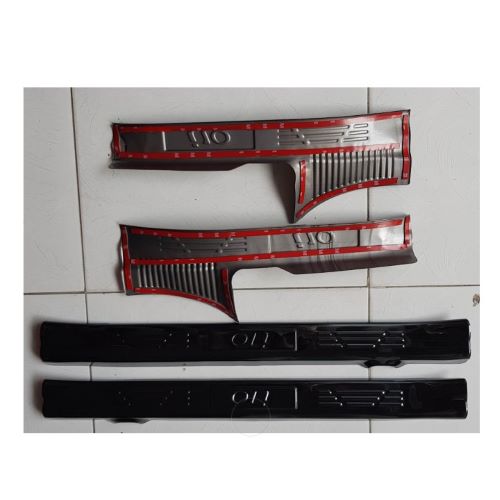 Bộ sản phẩm gồm 4 chi tiết cho 4 bậc ngoài cửa xe, có sẵn keo 3M ở mặt sau sản phẩm, rất chắc chắn