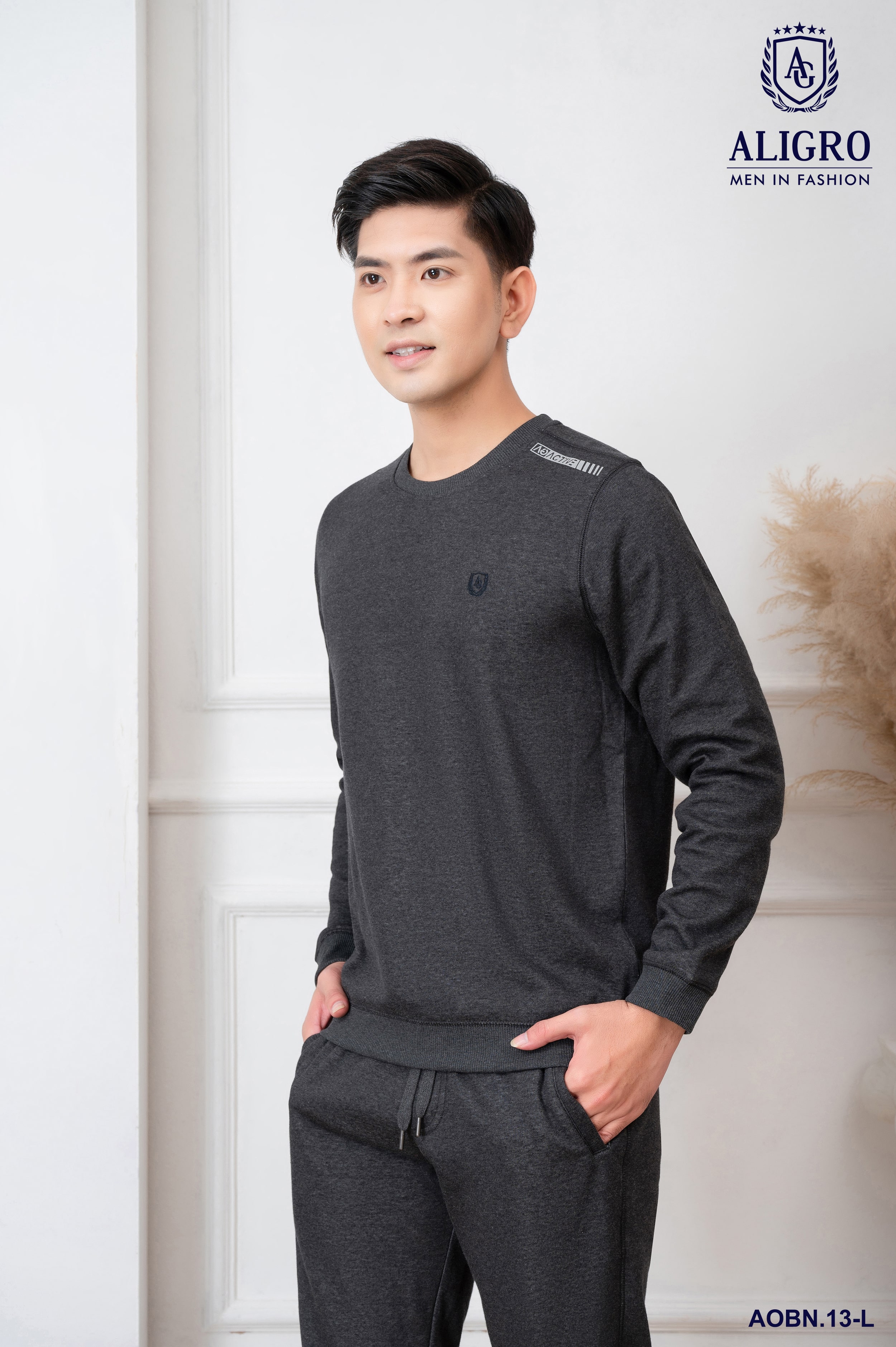 ✨Bộ nỉ ALIGRO cổ tròn màu ghi đậm BN.13