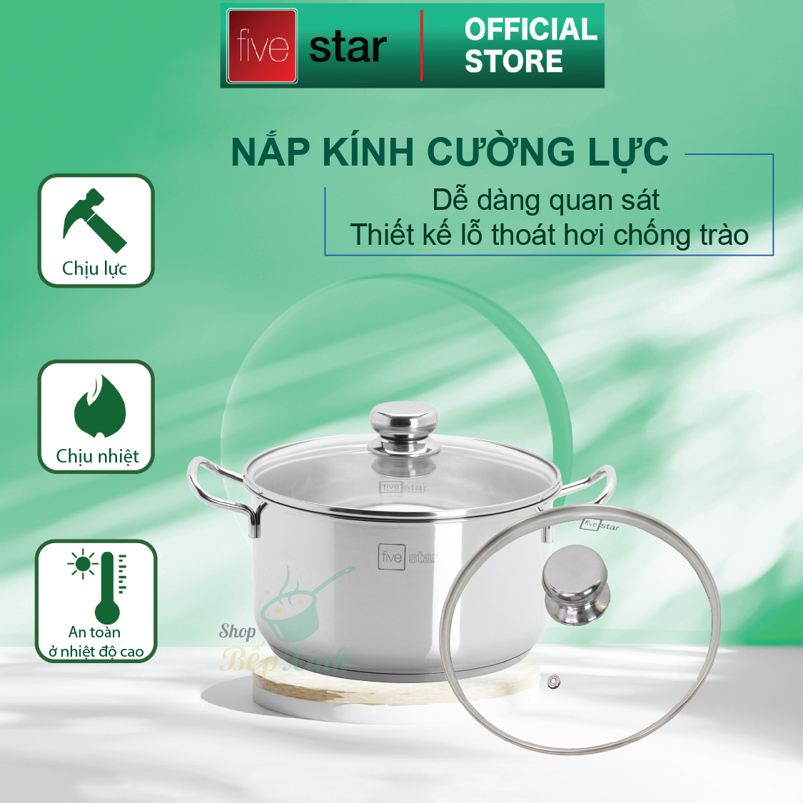 Bộ nồi cao cấp inox 304 Kitchi Fivestar Nắp Kính P2