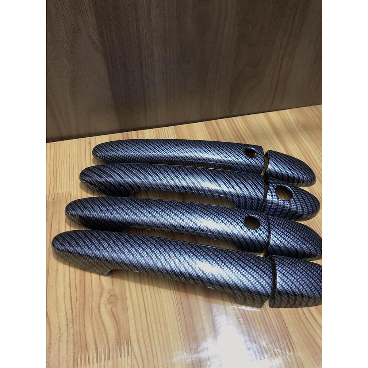 Bộ sản phẩm gồm các chi tiết ốp cho 4 tay nắm cửa và 4 hõm cửa xe (Quý khách có thể lựa chọn mua riêng ốp tay nắm cửa, ốp hõm cửa hoặc cả