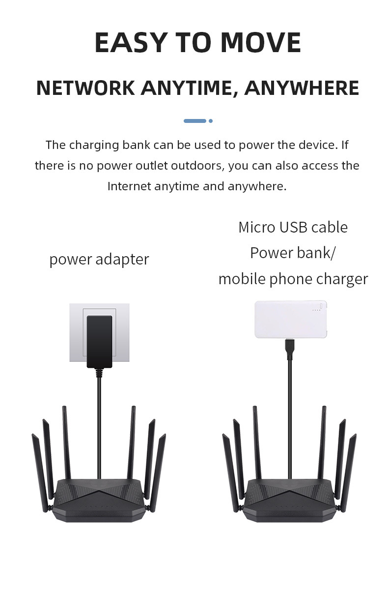 Bộ khuếch đại công suất cao và 2 ăng ten có thể tháo rời bên ngoài với độ lợi cao 9dBi cung cấp phạm vi phát sóng không dây tốt hơn. Tăng cường tín hiệu