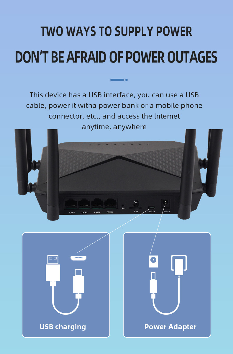 Giao tiếp 1 × 10/100 Mbps LAN/WAN Port; 1 × 10/100 Mbps LAN Port; 1 × 2FF SIM Card Slot Tốc độ Tốc độ Wifi: 2.4GHz:300Mbps; 5.8GHz:867Mbps/ Tốc độ 4G: DL:150Mbps UL:50Mbps Dải tần số