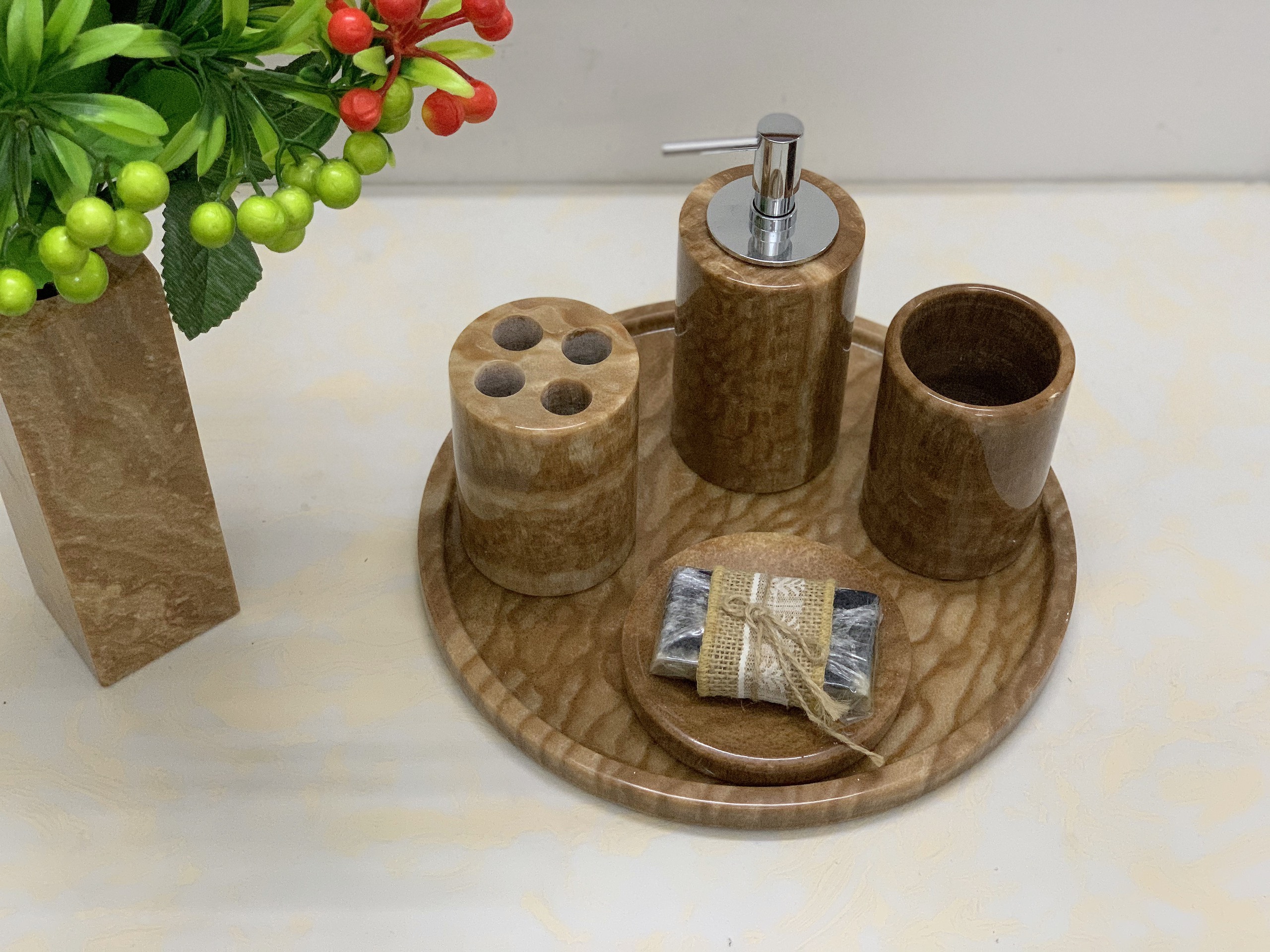 Mua tại TiktokBộ phụ kiện phòng tắm 4 sản phẩm bằng đá Marble màu Vàng vân gỗ: