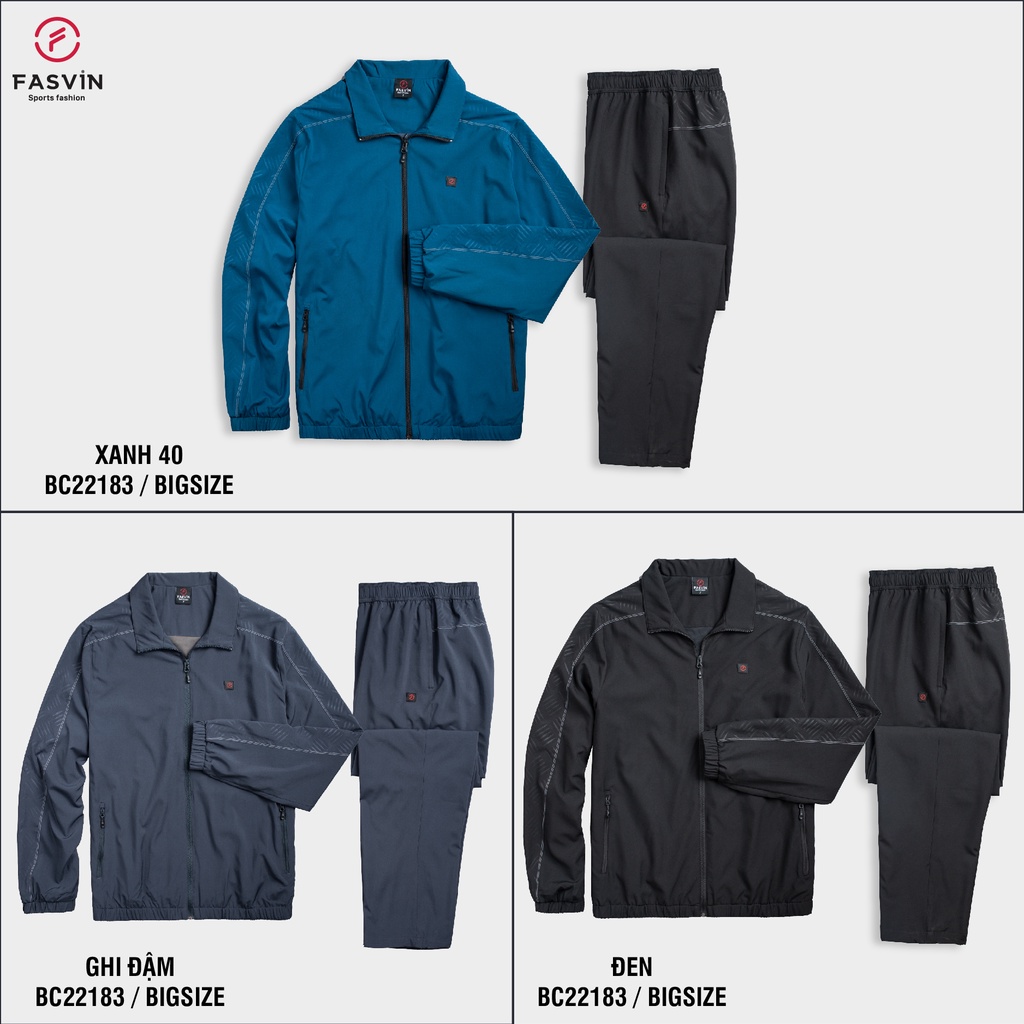 ✨Bộ quần áo gió nam BIG SIZE FASVIN BC22183.HN vải thể thao cao cấp 02 lớp lót vải thun mềm mại hàng chính hãng