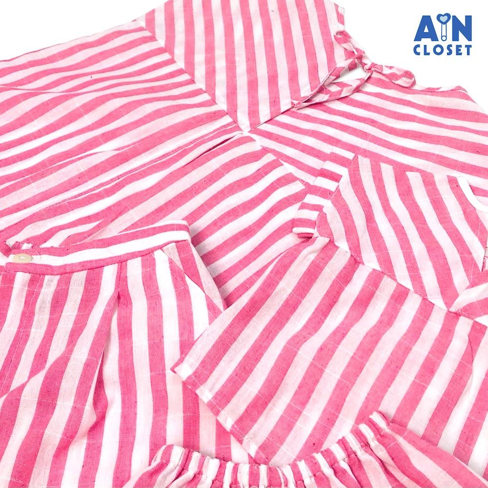 ✨Bộ quần áo ngắn cho mẹ họa tiết Kẻ hồng trắng linen cotton - AICDMEE2ZVSH - AIN Closet