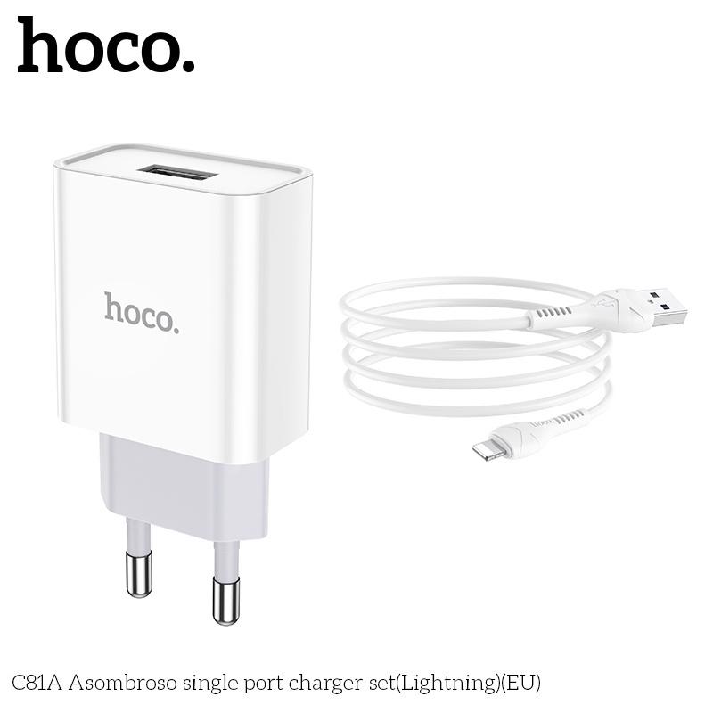 ✨Bộ sạc Hoco C81A sạc nhanh 2.1A Max - Hàng Chính Hãng 1 cổng sạc Usb to lai ning chất liệu PVC an toàn Pon Case