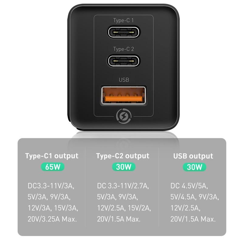 Bộ sạc nhanh GaN3 Pro 65W Baseus - Sạc nhanh cho laptop/smartphone/tablet/swtich - 12 tháng bảo hành