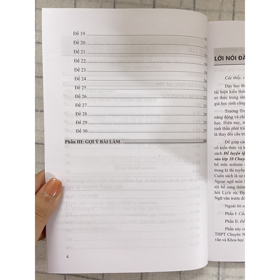 - Ôn tập bám sát cấu trúc đề thi mới nhất Trường THPT Chuyên Ngoại ngữ là trường học năng động và chất lượng cao, luôn đi đầu trong việc đổi mới phương pháp dạy học. Hiện nay, trường đã áp dụng cách thức kiểm tra đánh giá học sinh theo tinh thần phát triển năng lực, đào tạo toàn diện, mà một trong những biểu hiện rõ rệt và sâu sắc là thay đổi cấu trúc đề thi tuyển sinh vào 10. Dựa vào nhu cầu ôn thi đặc biệt của các bạn học sinh vào ngôi trường chuyên danh tiếng này, Ngọc Hà Book xin giới thiệu "Bộ sách hướng dẫn ôn tập kỳ thi vào lớp 10 của THPT Chuyên Ngoại ngữ": Được các giáo viên đang giảng dạy tại THPT Chuyên Ngoại ngữ trực tiếp biên soạn. Bám sát định dạng đề thi mới được công bố chính thức 2019 của THPT Chuyên Ngoại ngữ; cung cấp các đề luyện tập và hướng dẫn giải chi tiết Combo bao gồm 2 cuốn (Toán+Văn)