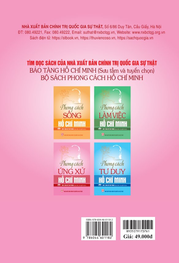Nhân kỷ niệm 135 năm Ngày sinh Chủ tịch Hồ Chí Minh (19/5/1890 - 19/5/2025), triển khai thực hiện các kết luận và chỉ thị của Bộ Chính trị về đẩy mạnh học tập và làm theo tư tưởng, đạo đức, phong cách Hồ Chí Minh, đồng thời góp phần làm cho tư tưởng, đạo đức, phong cách Hồ Chí Minh thật sự trở thành nền tảng tinh thần vững chắc của đời sống xã hội, xây dựng văn hóa, con người Việt Nam đáp ứng yêu cầu phát triển bền vững và bảo vệ vững chắc Tổ quốc Việt Nam xã hội chủ nghĩa, Nhà xuất bản Chính trị quốc gia Sự thật xuất bản bộ sách Phong cách Hồ Chí Minh gồm bốn cuốn: