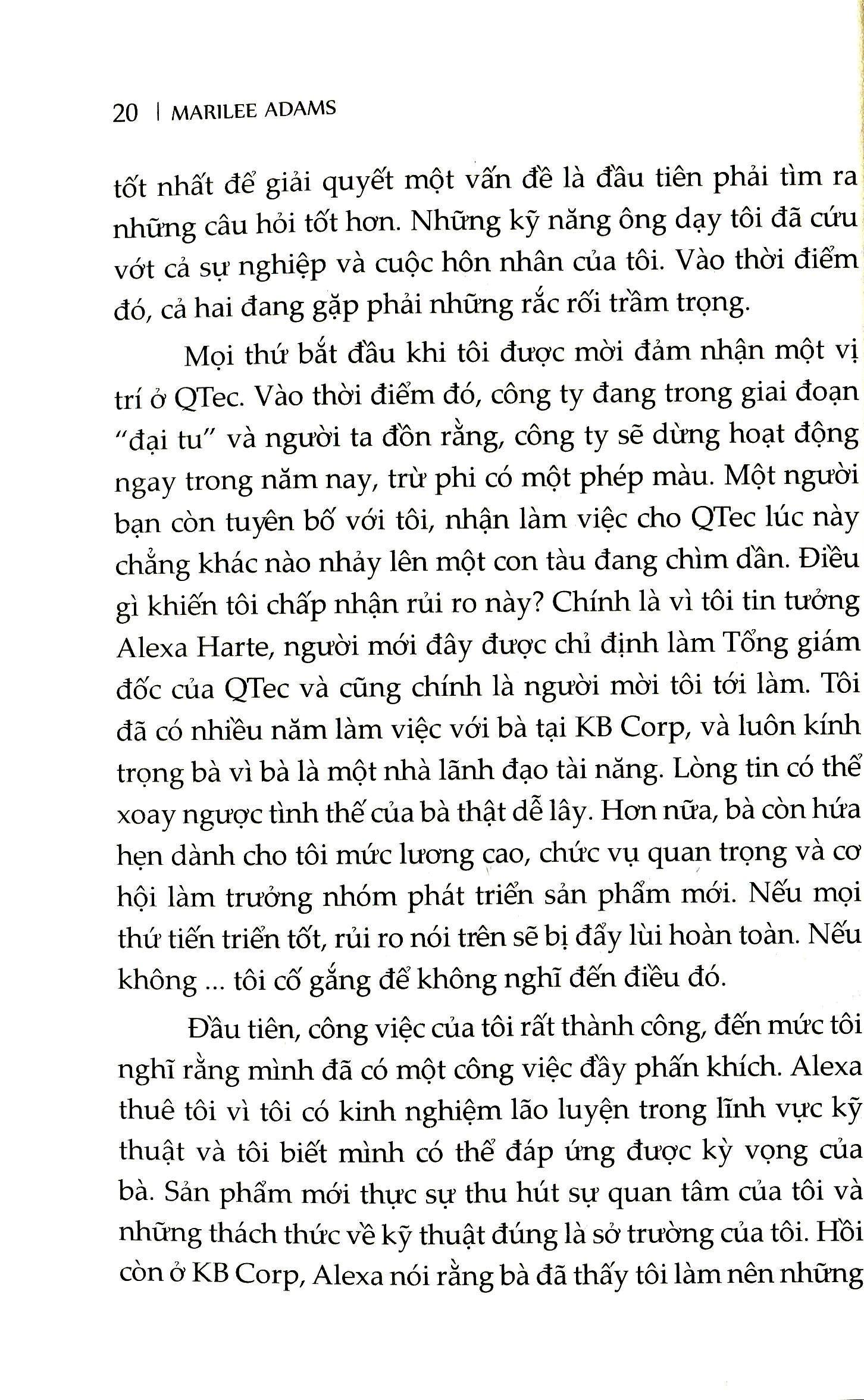 “Sự biến đổi nào, kể cả đới với cá nhân hoặc tổ chức đều bắt nguồn từ các câu hỏi mới. Marilee Adams mang đến cho chúng ta những công cụ đơn giản nhưng vô cùng mạnh mẽ để tìm ra các câu hỏi cho những câu hỏi sẽ thay đổi cuộc đời của chúng ta.” - Myron Rogers
