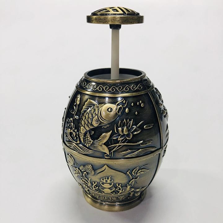 - Chất liệu: hợp kim mạ đồng, điêu khắc hoa văn