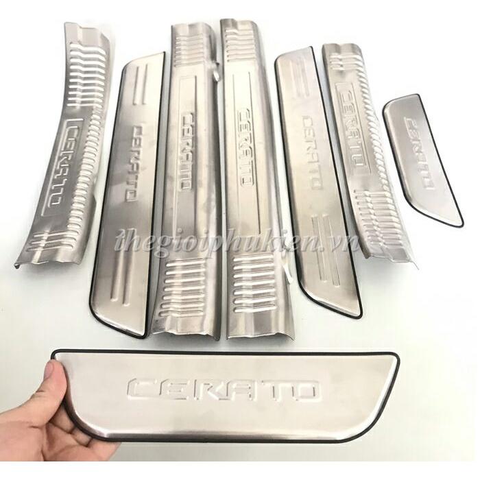 Ốp Bậc Cửa Dành Cho Xe Kia Soluto 2018 2019 2020 - mẫu titan Bộ sản phẩm có 8 chi tiết láp ở 4 cánh cửa xe: 4 chi tiết ngoài và 4 chi tiết