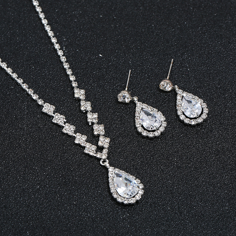 ✨Bộ trang sức bông tai và dây chuyền đính đá cô dâu CD2202