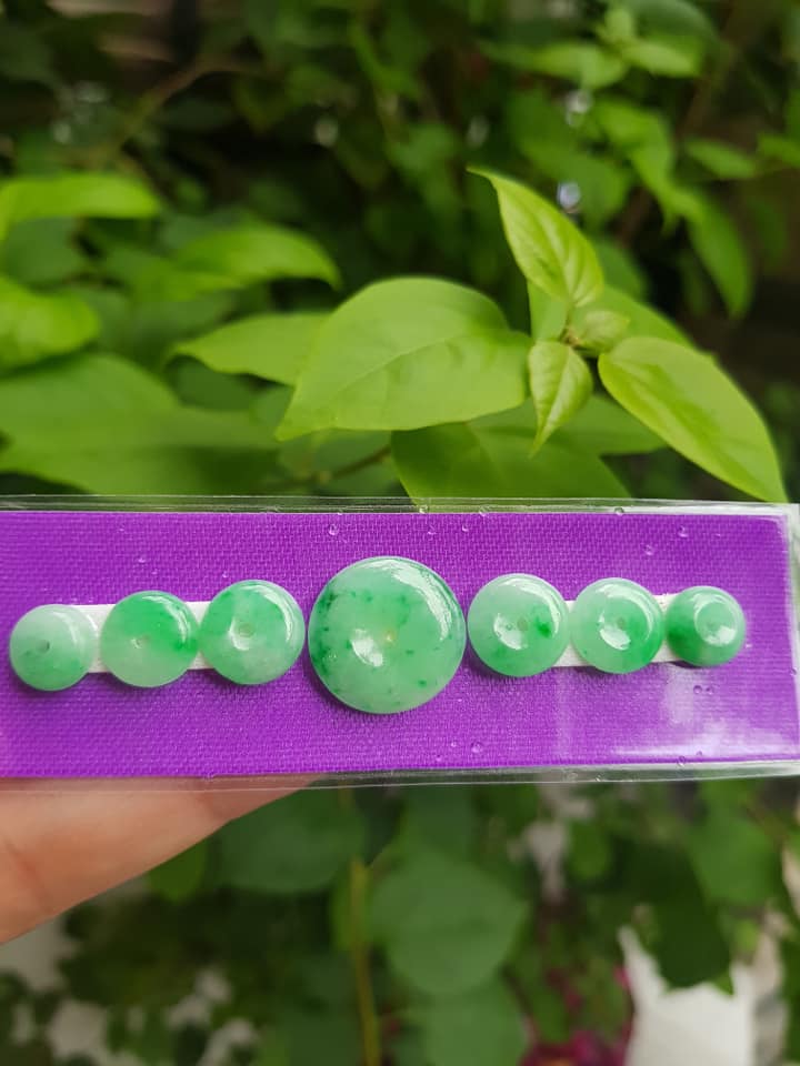 Bộ 5 đồng tiền đá cẩm thạch tự nhiên xanh ngọc đậm đều đẹp Nữ Phối vòng tay,mặt dây chuyền vàng đeo cực kỳ xinh xắn ạ Size hạt 9mm x dầy 3,8mm x lỗ