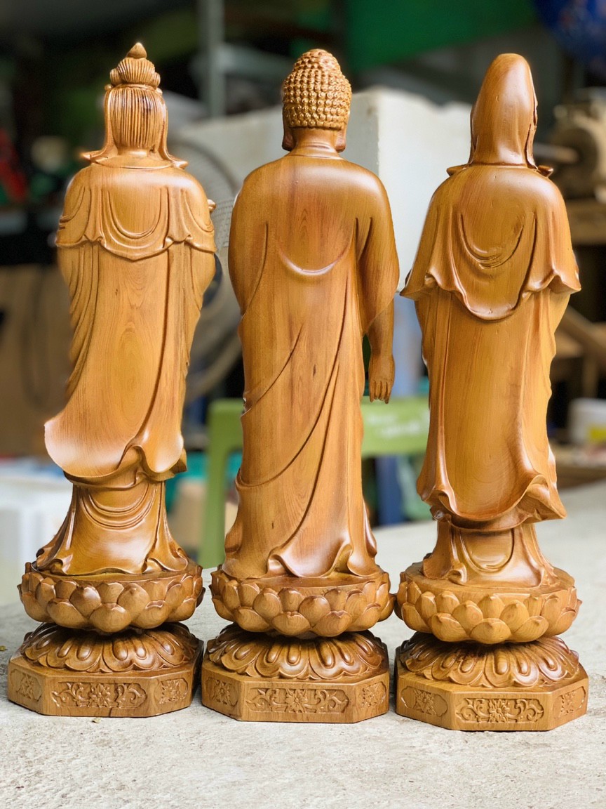 ✨Bộ tượng phật tam thánh bằng gỗ bách xanh thơm nức kt cao 50×15×15cm