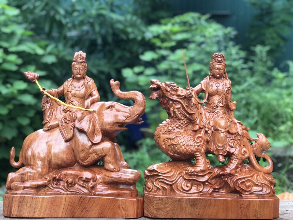 _ Bộ tượng phật văn thù ,phổ hiền bồ tát được làm bằng chất liệu gỗ hương đá tự nhiên 100%