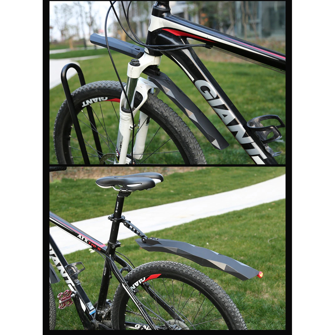 Bộ Vè Chắn Bùn Xe Đạp Gắn Trước Và Sau Chất Liệu Dẻo Mềm Chống Gãy Tích Hợp Đèn Led Đuôi Cảnh Báo