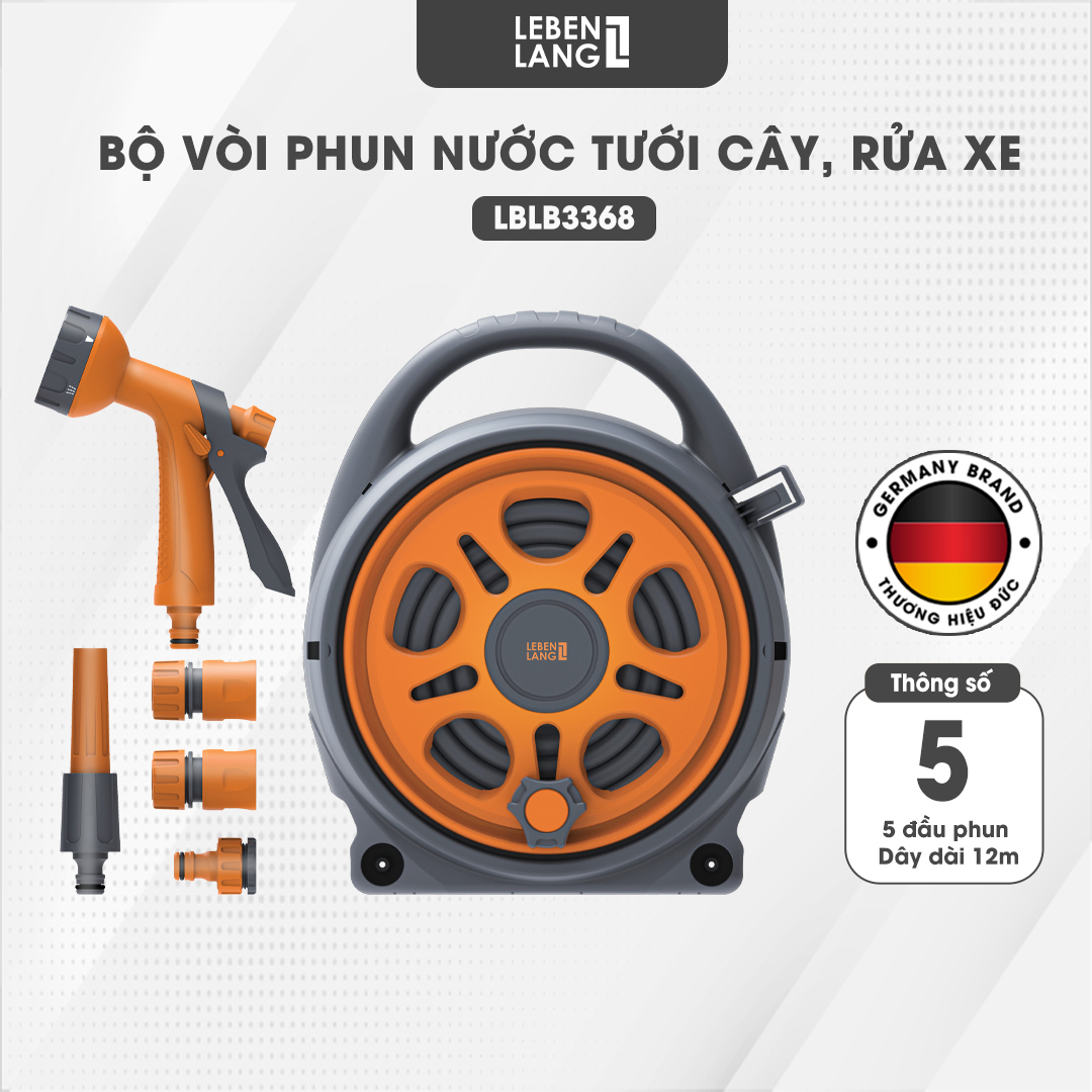 Bộ vòi nước tưới cây, rửa xe đa năng Lebenlang LBLB3368 dây dài 12m, 5 đầu phun đi kèm - hàng chính hãng