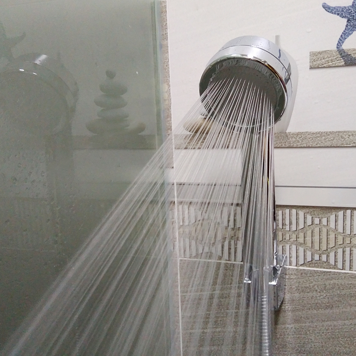 - Thiết kế đặc biệt: mặt phun nước đường kinh 8cm, với hàng trăm lỗ nhỏ li ti làm tăng áp lực nước ở đầu ra lên gấp đôi so với vòi hoa sen thông thường, và làm tơi mịn nước, bạn sẽ đồng thời cảm nhận được sự mạnh mẽ và mịn màng của dòng nước, một cảm giác dễ chịu sẽ lan tỏa trên làn da, thấm sâu xóa tan sự mệt mỏi.
