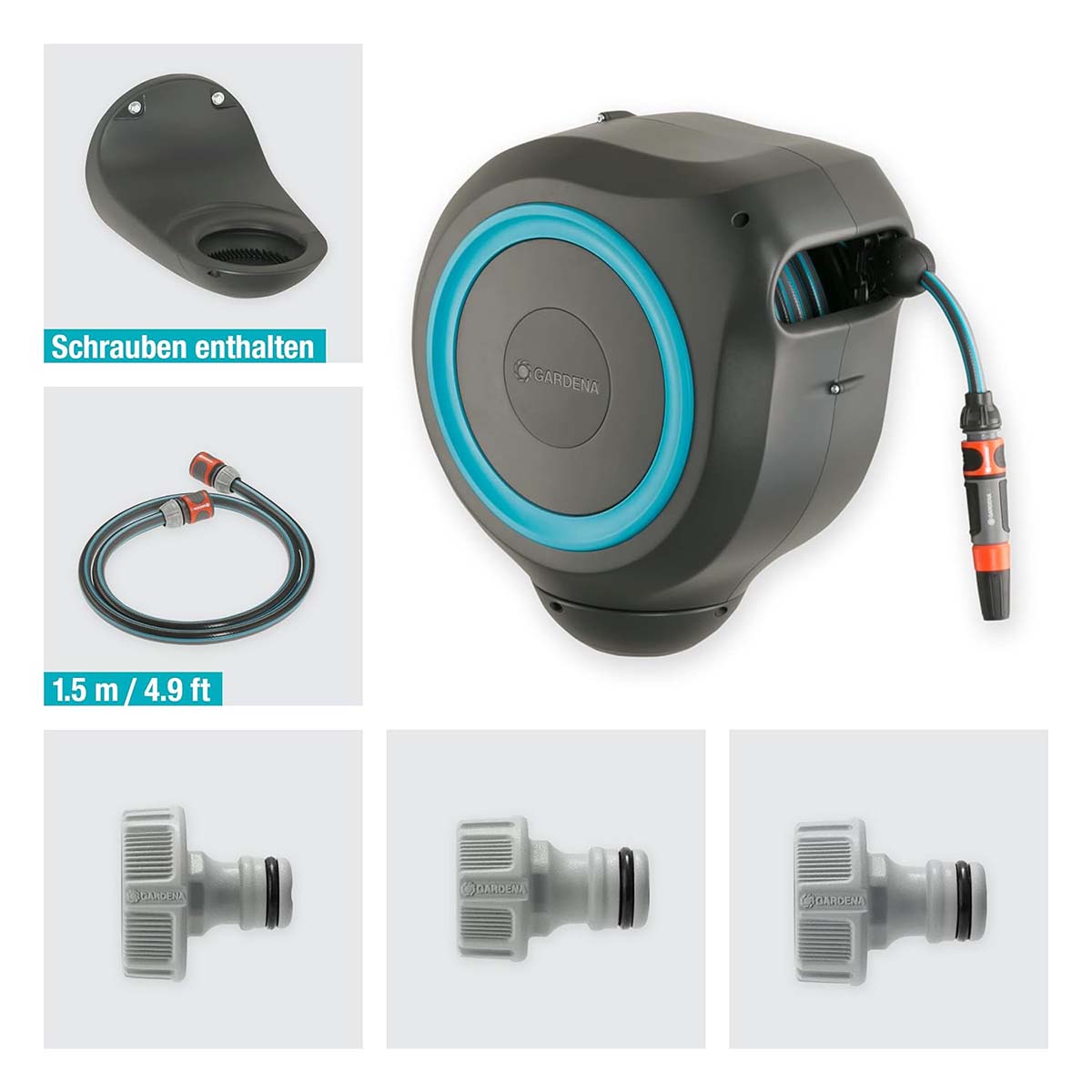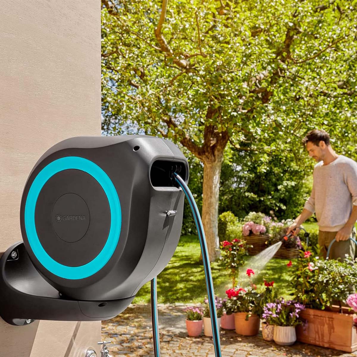 ✨Bộ vòi tưới gắn tường cuộn tự động 20M Gardena 18610-20