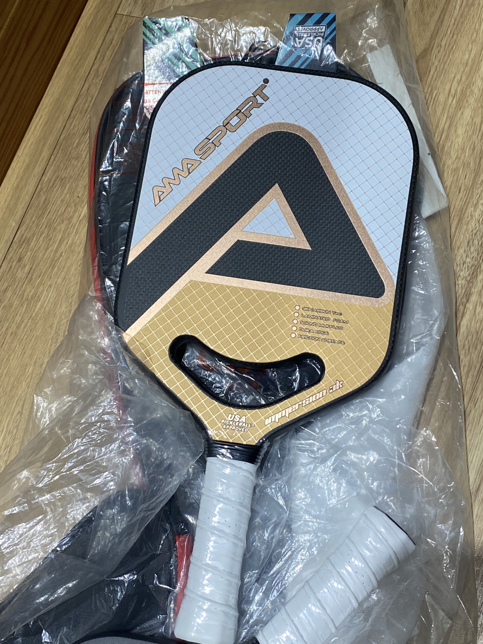 ✨Bộ vợt pickleball AMA SPORT PP002 (gồm 1 vợt,2 bóng, cuốn cán,cuốn viền,túi da) bề mặt sợi carbon 3k dày 18mm cao cấp, diện tích mặt vợt rộng hơn so với các vợt thông thường.