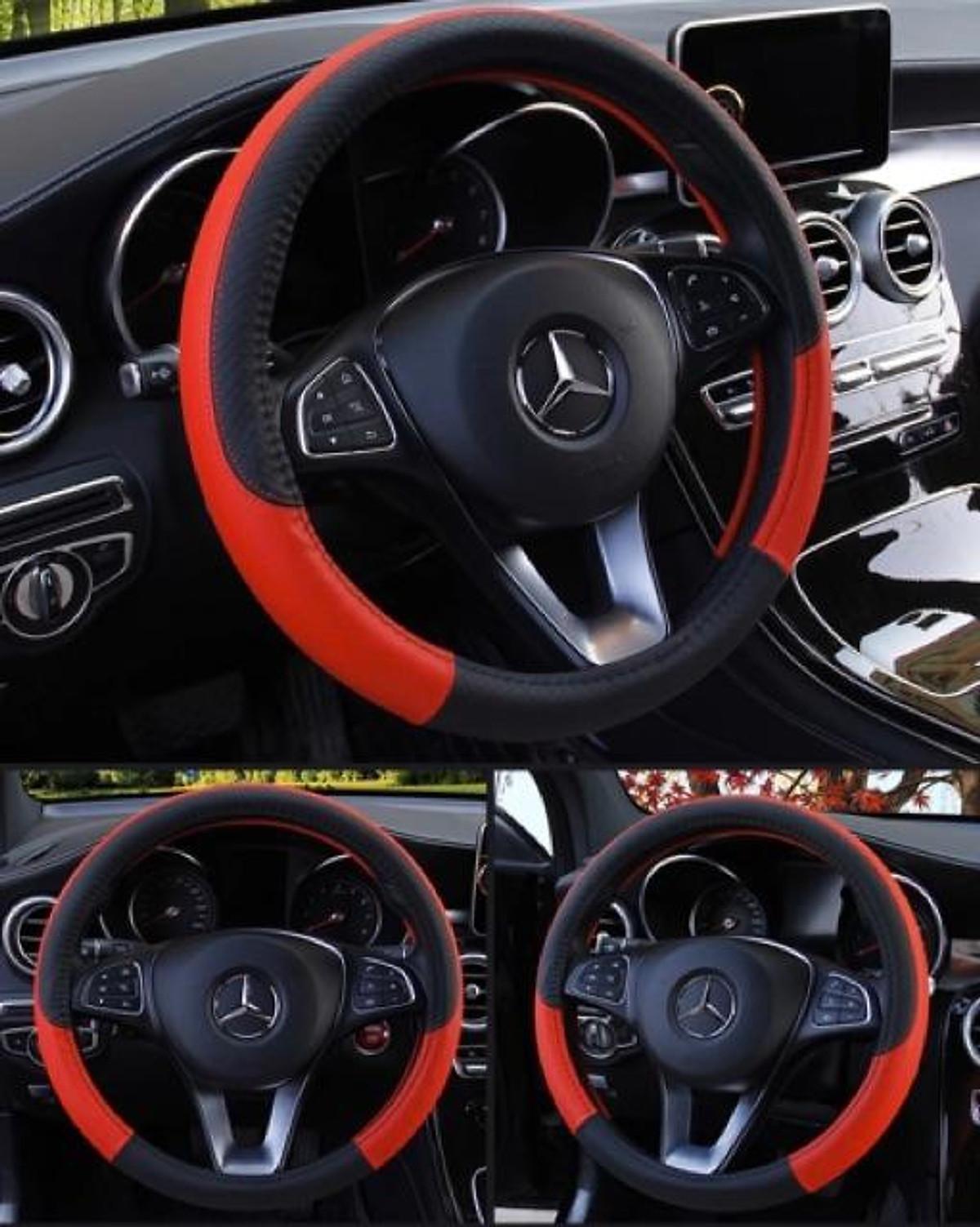 Bọc vo lang ô tô thể thao - da vân carbon phối da size 38cm Dùng cho xe 4 chỗ - 7 chỗ , Bán Tải
