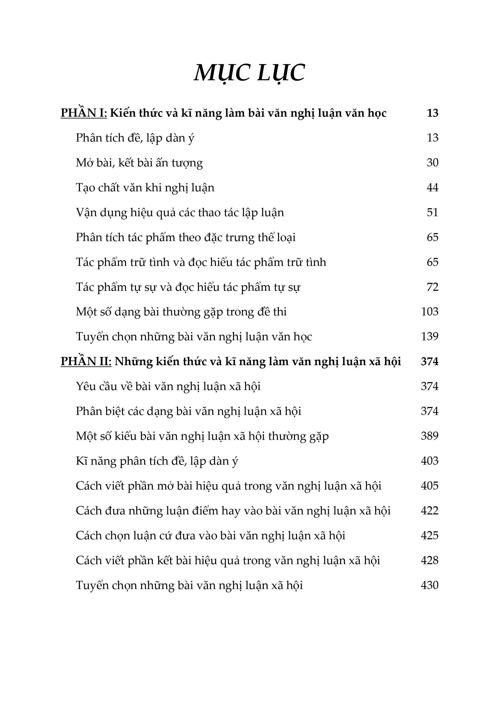 Đây là cuốn sách được biên soạn theo tinh thần thi mới của Bộ Giáo dục và Đào tạo, theo cấu trúc đề thi 3 phần: Kiểm tra kiến thức (câu 1); Nghị luận xã