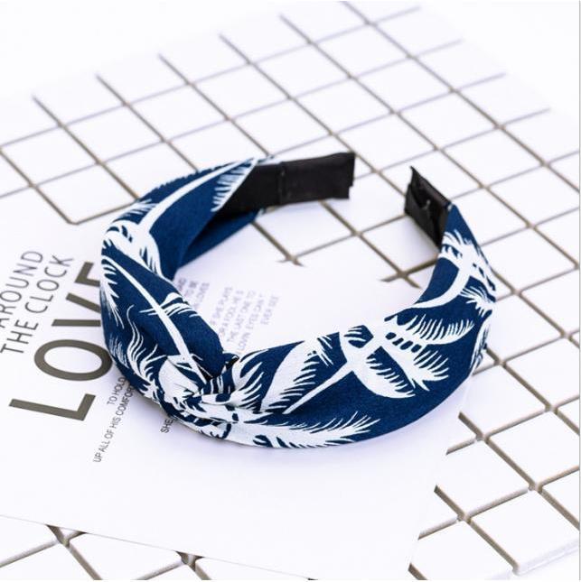 ✨Bờm cài tóc turban nữ BN34C bản to họa tiết lá dừa nền xanh đậm
