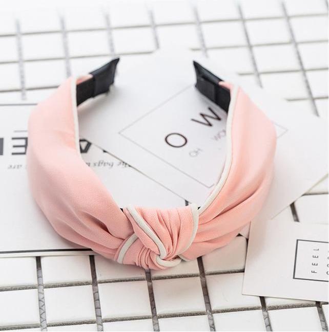 ✨Bờm cài tóc turban nữ màu hồng phấn viền trắng bản to BN33F